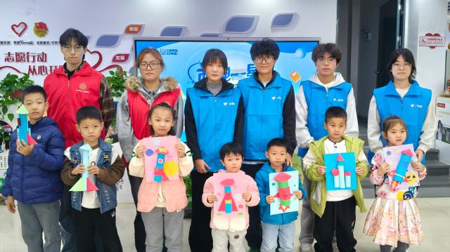 活动伊始,志愿者以通俗易懂的语言,通过讲解电、水电与核电的发电原理,形象阐释了“一台百万千瓦级核电站一年仅需30吨核燃料”的高效特性,帮助孩子们建立起对核电的基本认识。随后,志愿者通过形象的比喻和贴近生活的案例,让孩子们了解到核能在发电、医疗、农业等领域的广泛应用,以及我国自主研发的“华龙一号”等重大科技成果。手工制作环节,志愿者带领孩子们利用彩纸动手制作“火箭”模型。在志愿者的耐心指导下,孩子们用彩纸剪出箭体和尾翼,将各部分粘合组装,成功制作出“火箭”模型。