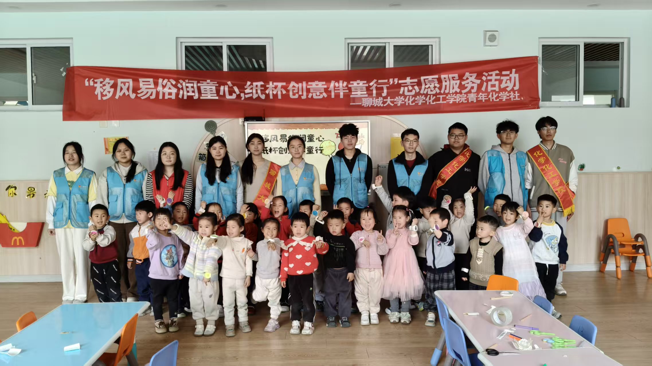 为深入践行移风易俗理念,培育儿童环保创新意识,3月26日,化学化工学院青年化学社于聊城市东昌府区湖南路实验幼儿园举办“移风易俗润童心,纸杯创意伴童行”志愿服务活动。
